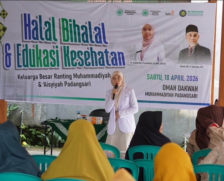 Dalam pelaksanaannya, tim kesehatan RS Roemani menghadirkan dr. Muhammad Rizal Bayu yang turut memberikan pelayanan dan konsultasi kesehatan kepada peserta. Pemeriksaan tanda-tanda vital (TTV) dilakukan oleh perawat Khusnul Khatimah, S.Kep., Ns, sehingga proses skrining kesehatan dapat berjalan optimal dan menyeluruh. Selain layanan pemeriksaan, kegiatan Halal Bihalal juga diisi dengan sesi edukasi kesehatan yang disampaikan oleh dr. Ardina Nur Pramudhita, Sp.KFR, yang memberikan wawasan kepada masyarakat terkait pentingnya menjaga kebugaran dan kesehatan pasca-Ramadan.