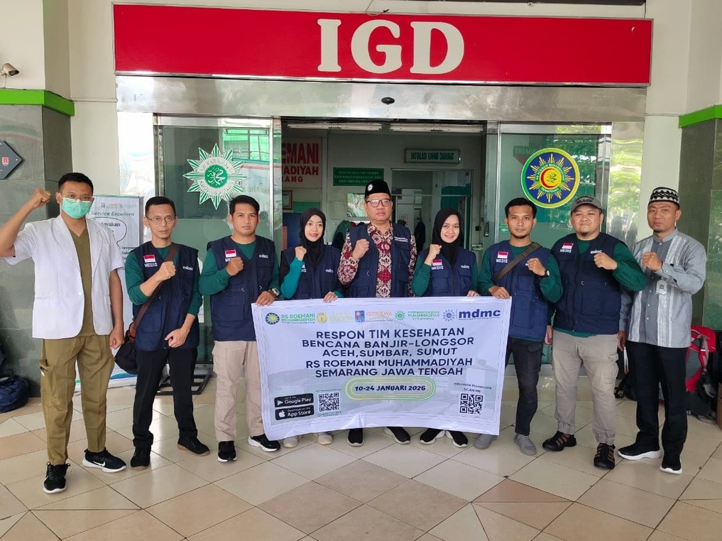 Di tengah kabar bencana di wilayah Aceh, Sumatra Utara dan Sumatra Barat, RS Roemani Muhammadiyah Semarang memilih untuk tidak hanya menyampaikan doa. Rumah sakit ini bergerak. Dengan kesiapsiagaan yang telah dipersiapkan sejak awal, RS Roemani mengirimkan tim Emergency Medical Team (EMT) sebagai bentuk respon nyata terhadap himbauan Pimpinan Pusat Muhammadiyah.